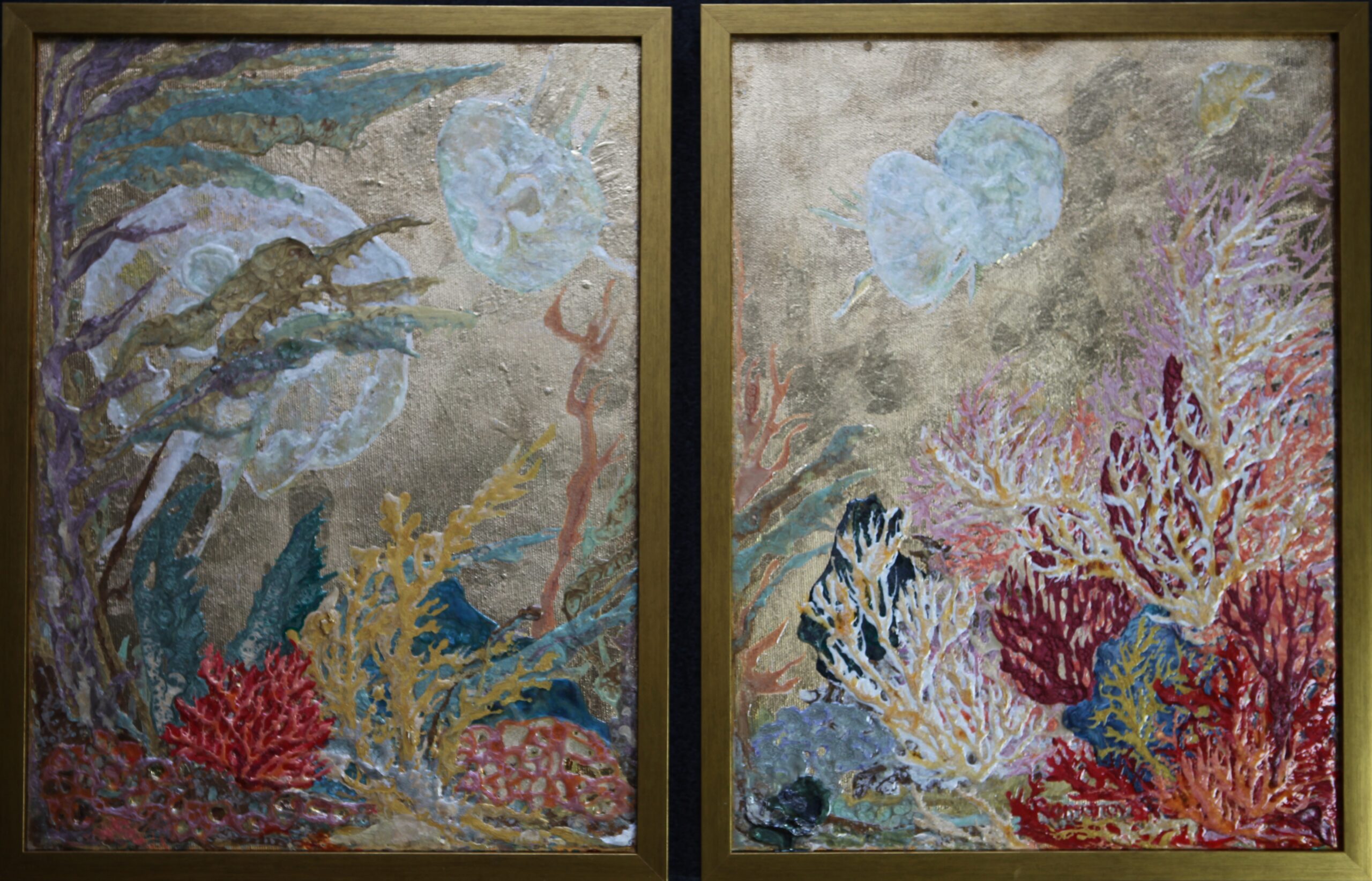 Technika: szlagmetal, żywica z masą perłową na płótnie